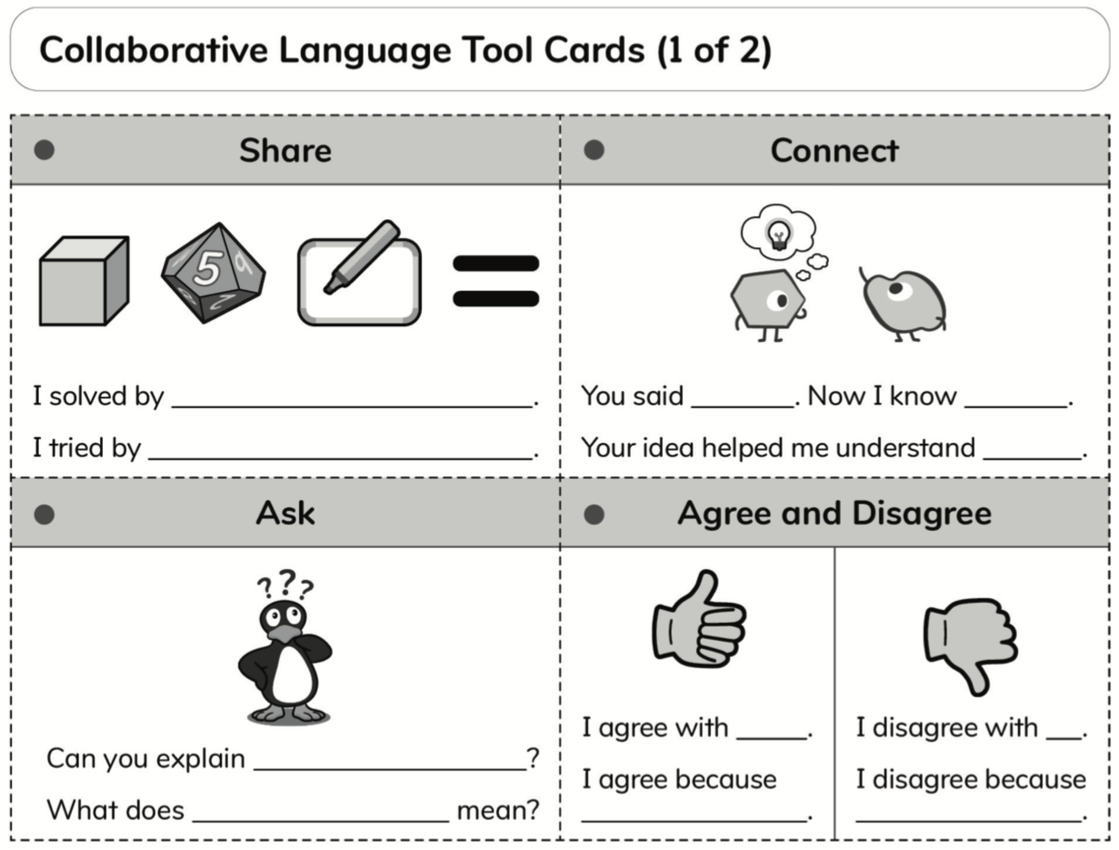 Students regularly explain their thinking and justify their mathematical reasoning through carefully designed discourse opportunities facilitated by InsightMath's unique tools. Across grade levels, our three-part lesson structure (Launch, Explore, Reflect and Connect) ensures students have opportunities to make sense of problems, develop and compare strategies, and articulate their mathematical understanding. The curriculum utilizes specific discussion tools like Argumenteers (sample student work that displays various thinking strategies) and peer revoicing protocols to elevate student contributions. Every lesson includes formative assessment opportunities with specific guidance on what to look for in student reasoning and how to respond with appropriate support—not just checking for correct answers but understanding the mathematical thinking behind them. This intentional focus on student-centered mathematical discourse throughout the lesson helps students develop deeper conceptual understanding and stronger mathematical communication skills.