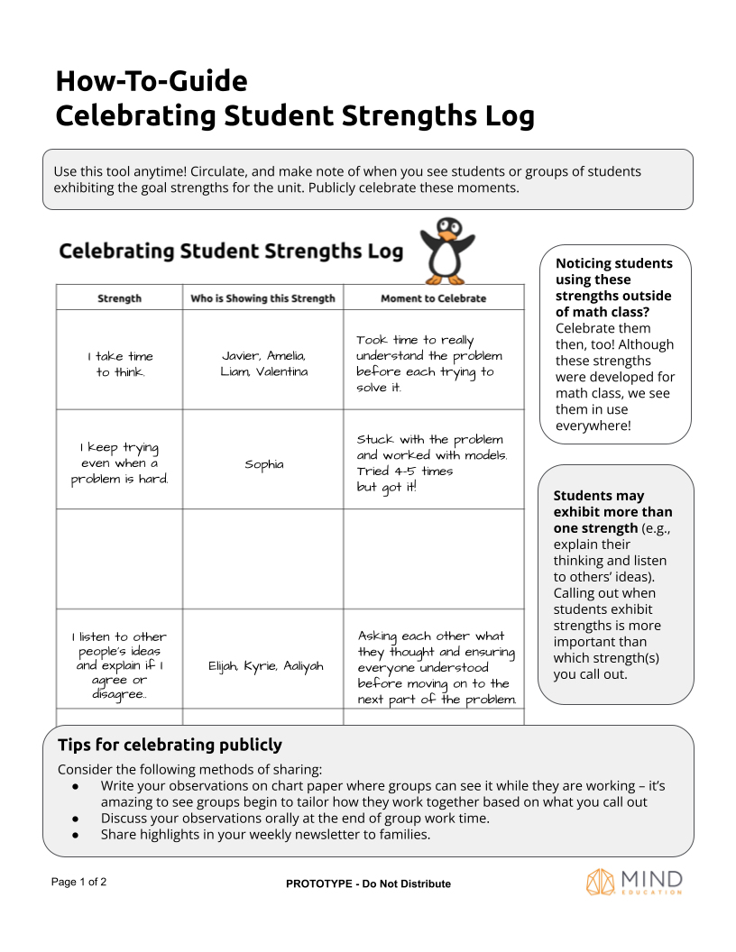 To keep the SMPs alive in the classroom and find opportunities to recognize students enacting them, the Celebrating Student Strengths tool supports teachers in noticing and rewarding these powerful habits of mind.
