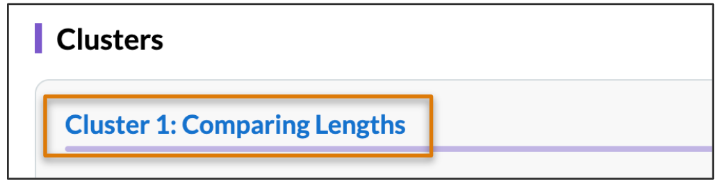 Unit clusters contain lessons that form a learning arc, which supports an essential understanding. Unique to the cluster level, educators are equipped to support students in building their schemas and working through disequilibrium moments, identify and respond to mathematical errors or misconceptions, and formatively assess throughout the lesson progression. | |